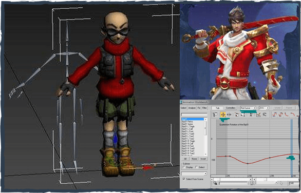 负责3D游戏中的各类角色的骨骼绑